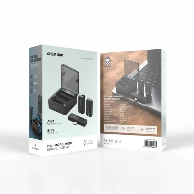 میکروفون یقهای Green Lion 2 in 1 با طراحی مدرن و نمایشگر دیجیتال، تجربهای دقیق و حرفهای از ضبط صدا را ارائه میدهد. این محصول با دو فرستنده مستقل، مناسب برای مصاحبههای دو نفره، پادکستها و تولید محتوای ویدیویی است. اتصال بیسیم پایدار آن از طریق فناوری UHF یا بلوتوث، آزادی حرکت را بدون افت کیفیت صدا تضمین میکند. نمایشگر دیجیتال روی گیرنده، اطلاعاتی مانند سطح باتری، وضعیت اتصال و کانال فرکانس را نمایش میدهد. طراحی سبک و قابل حمل، همراه با باتری قدرتمند، این میکروفون را به گزینهای ایدهآل برای استفاده در فضای باز یا استودیو تبدیل کرده است.