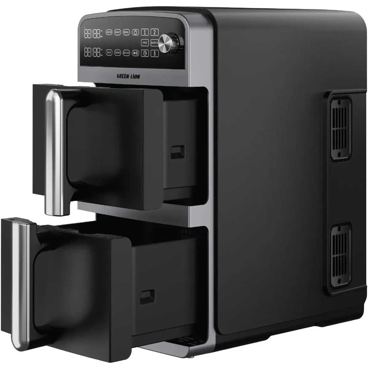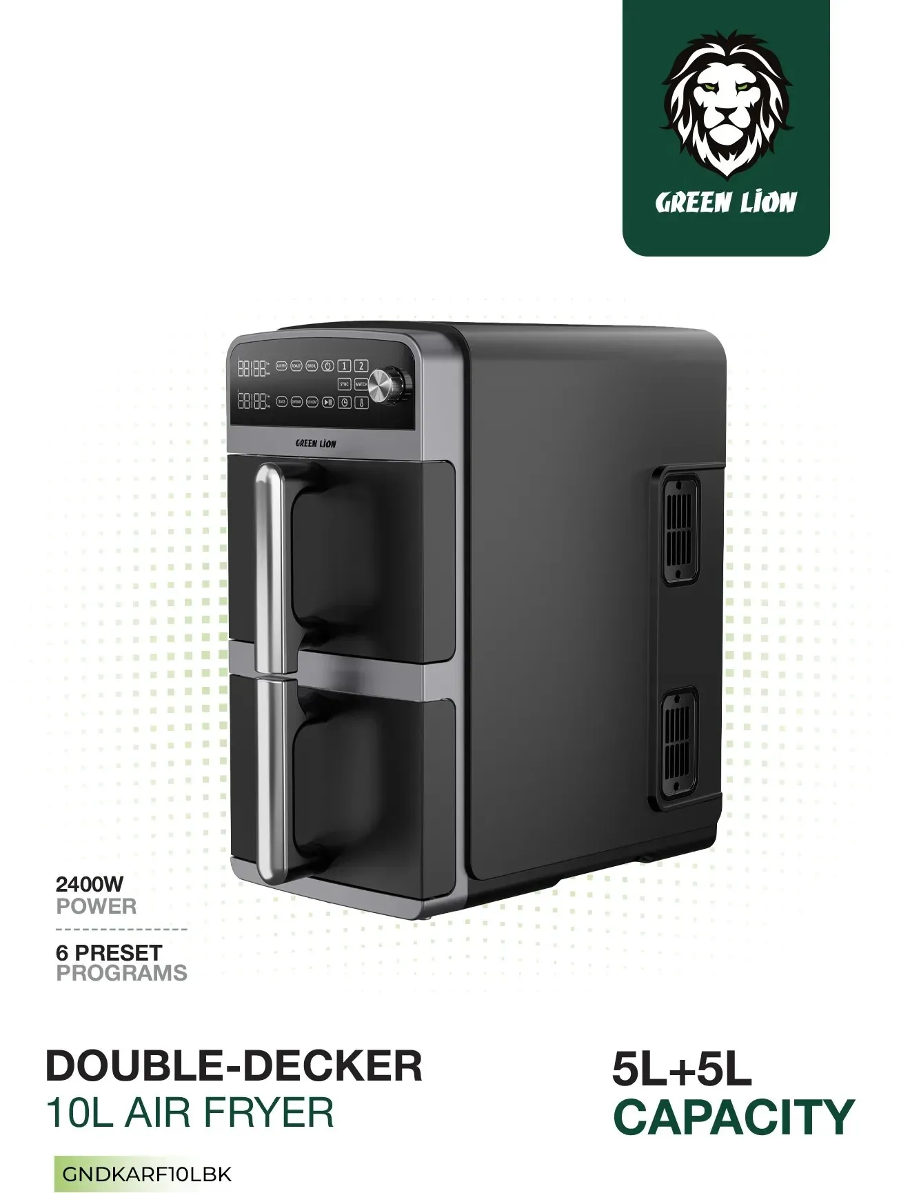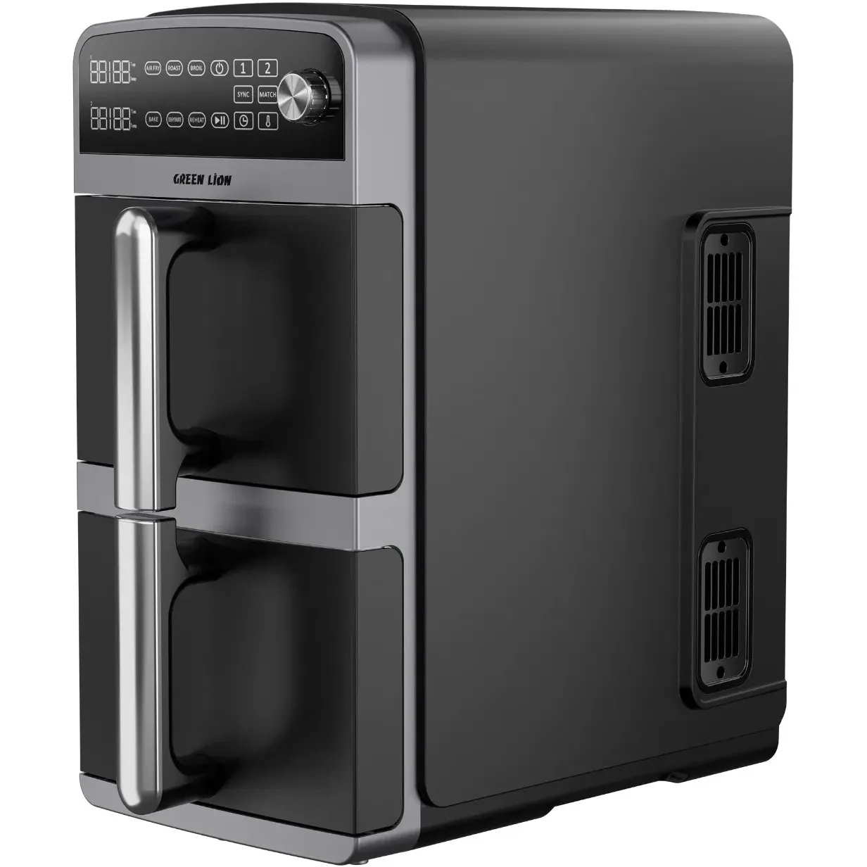 هواپز گرین لاین مدل Double-Decker با طراحی دو طبقه، امکان پخت همزمان دو نوع غذا را بدون اختلال در طعم و بوی آنها فراهم میکند. این دستگاه از فناوری هوای داغ با циркуляación سریع بهره میبرد که باعث پخت یکنواخت و کاهش مصرف روغن تا ۸۵٪ میشود. مجهز به پنل کنترل دیجیتال با نمایشگر LED برای تنظیم دقیق دما (معمولاً ۸۰ تا ۲۰۰ درجه سانتیگراد) و زمان (تا ۶۰ دقیقه) است. سبدهای آن از جنس تفلون ضدچسب هستند و قابلیت شستشو در ماشین ظرفشویی را دارند. ظرفیت ۱۰ لیتری آن برای خانوادههای پرجمعیت یا مهمانیهای کوچک ایدهآل است.