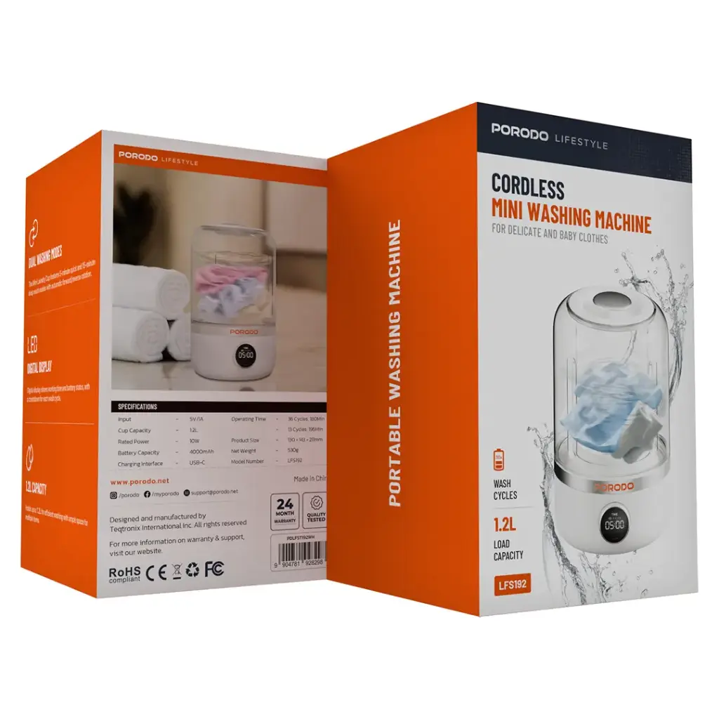 این ماشین لباسشویی کوچک و بیسیم با ظرفیت ۱.۲ لیتر و توان مصرفی ۱۰ وات، برای شستوشوی لباسهای ظریف، کودکانه یا حتی جوراب و لباس زیر طراحی شده است. باتری داخلی ۴۰۰۰ میلیآمپرساعتی آن امکان شستوشوی مداوم تا ۱۹۶ دقیقه را فراهم میکند، که بسته به حالت انتخابی (۳۶ یا ۱۳ چرخه) قابل تنظیم است. دو حالت شستوشوی مختلف برای انواع پارچهها در نظر گرفته شده تا مراقبت بهتری از لباسها صورت گیرد. نمایشگر دیجیتال LED به کاربر امکان مشاهده زمان باقیمانده و وضعیت شستوشو را میدهد. طراحی بیسیم و سبک آن باعث شده تا برای سفر، کمپینگ، یا استفاده در فضاهای کوچک مانند خوابگاهها و آپارتمانها بسیار کاربردی باشد.