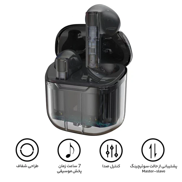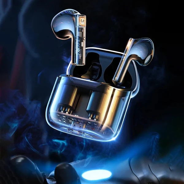 هدفون بیسیم YX09 Fully Transparent با طراحی بدنه شفاف، ظاهری متفاوت و مدرن دارد. این مدل از نوع True Wireless Stereo (TWS) بوده و صدای Hi-Fi با بیس عمیق و تریبل شفاف تولید میکند. وجود سه میکروفون داخلی باعث میشود تماسها کیفیت مناسبی داشته باشند، هرچند برخی کاربران گزارش دادهاند که کیفیت مکالمه متوسط است.