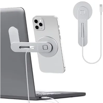 مدل ENERGIA از برند Levelo، یک هولدر و شارژر بی‌سیم با طراحی مدرن و بدنه‌ی مقاوم است که مخصوص گوشی‌های مجهز به فناوری MagSafe طراحی شده. این دستگاه با توان شارژ ۱۵ وات، شارژ سریع و ایمن را برای گوشی‌های آیفون و سایر دستگاه‌های سازگار فراهم می‌کند. پایه‌ی مغناطیسی آن باعث اتصال محکم و بدون لغزش گوشی می‌شود و قابلیت چرخش ۳۶۰ درجه‌ای، زاویه دید دلخواه را در اختیار کاربر قرار می‌دهد. بدنه‌ی آلومینیومی با پوشش ضدخش، ظاهر لوکس و دوام بالا را تضمین می‌کند. این مدل برای استفاده روی میز کار، داخل خودرو یا حتی کنار تخت خواب بسیار مناسب است و با کابل USB-C و شارژر دیواری همراه عرضه می‌شود.