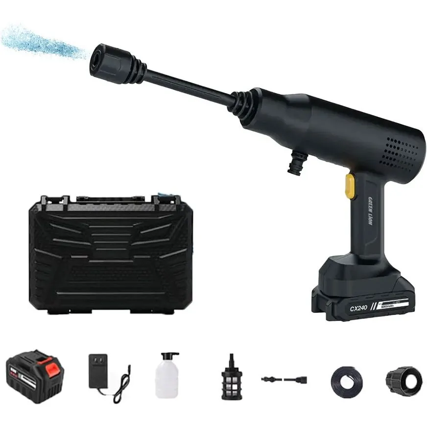 تفنگ شستشوی شارژی گرین لاین مدل (GNC240WGUNBK) CX240 Cordless یک ابزار قدرتمند و قابل حمل برای شستشوی سریع و آسان سطوح مختلف است. این محصول با طراحی مدرن و باتری داخلی شارژی عرضه شده و برای کسانی ساخته شده که به دنبال یک دستگاه سبک، بیسیم و کارآمد برای نظافت خودرو، حیاط، وسایل خانگی و سفر هستند.