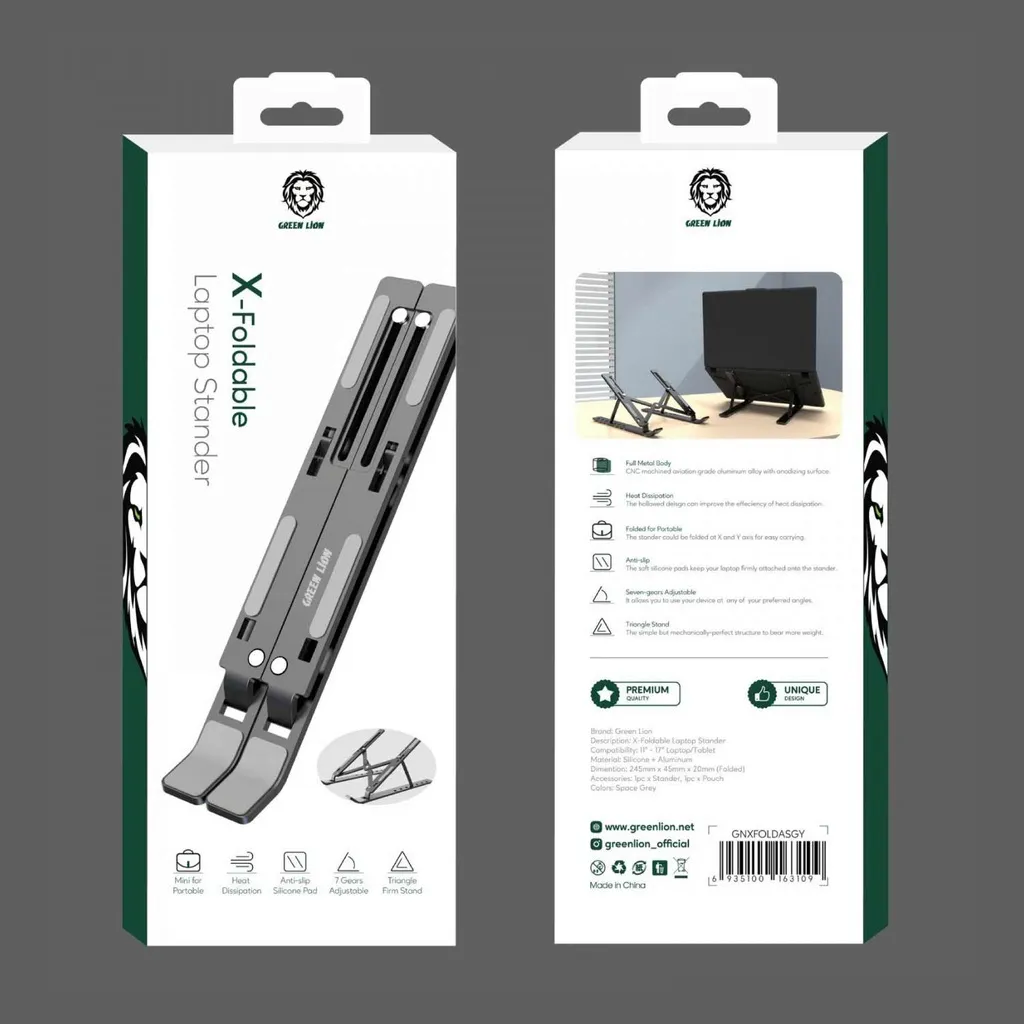 پایه نگهدارنده لپتاپ Green Lion X-Foldable یک محصول کاربردی و مدرن برای افرادی است که ساعات زیادی را پشت لپتاپ سپری میکنند. طراحی تاشو و سبک آن باعث میشود بهراحتی قابل حمل باشد و در کیف لپتاپ جای گیرد. ساختار مثلثی و فلزی آن، استحکام بالایی دارد و برای لپتاپهایی با اندازه 11 تا 17 اینچ مناسب است.