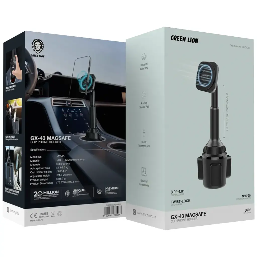 پایه نگهدارنده Green Lion GX-43 MagSafe، با ساختار مستحکم از جنس ABS، PC و آلیاژ آلومینیوم، دوام بالایی دارد و برای استفاده طولانیمدت طراحی شده است. این محصول با ۲۰ آهنربای N55 و قدرت جذب ۲.۳ تا ۲.۵ کیلوگرم، گوشی را بهصورت ایمن در جای خود نگه میدارد. ارتفاع قابل تنظیم بین ۲۱.۵ تا ۲۶.۸ سانتیمتر، امکان تنظیم زاویه دید دلخواه را فراهم میکند. حلقه فلزی یونیورسال و پایه سیلیکونی ضدلغزش، ثبات بیشتری ایجاد کرده و از لغزش یا افتادن گوشی جلوگیری میکند. مکانیزم قفل چرخشی، پایه را بهخوبی درون جا لیوانی خودرو ثابت نگه میدارد و با اندازههای ۳.۰ تا ۴.۰ اینچ سازگار است. این پایه با گوشیهای آیفون سری ۱۲ تا ۱۶ و اکثر گوشیهای اندرویدی سازگار است و تجربهای ایمن و راحت از استفاده گوشی در خودرو را فراهم میکند.