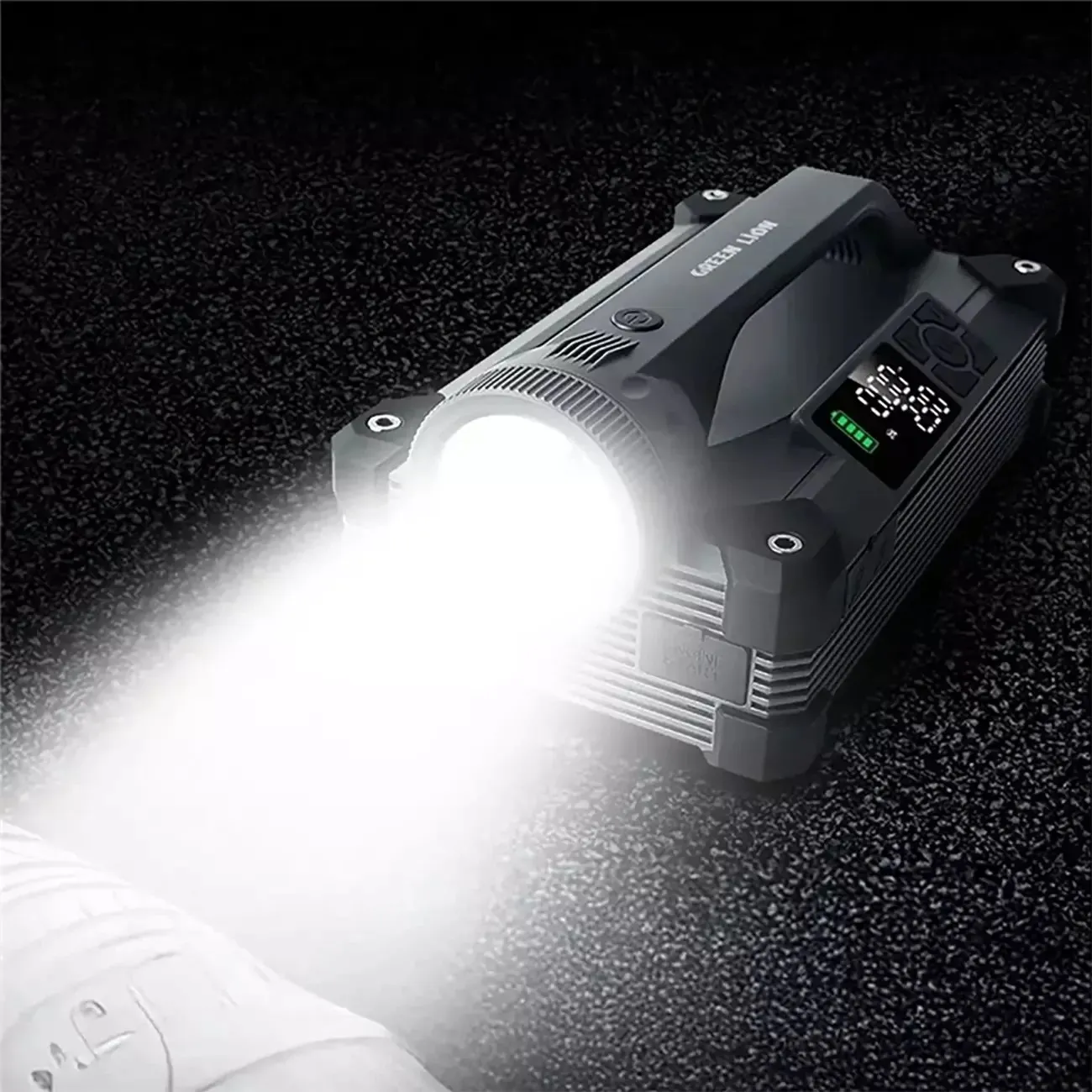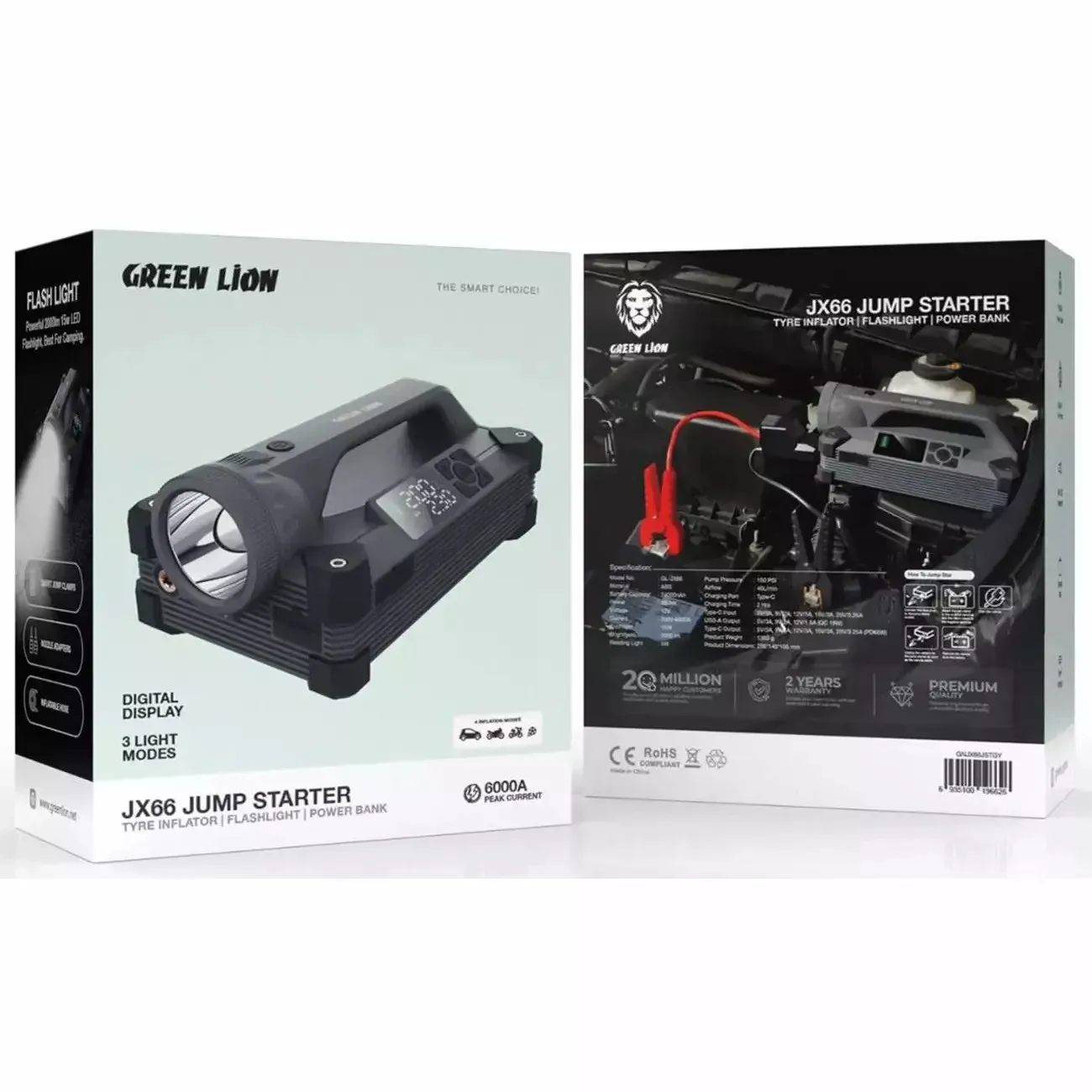 این مدل از جامپ استارترهای گرین لاین، یک دستگاه چندمنظوره با ظرفیت بالا است که هم به عنوان پاوربانک و هم استارت خودرو (برای موتورهای بنزینی تا ۶ سیلندر و دیزلی تا ۴ سیلندر) عمل میکند. دارای خروجی DC 12V برای استارت زدن، پورتهای USB-A و USB-C با پشتیبانی از فست شارژ (Quick Charge) برای شارژ سریع دستگاههای همراه است. همچنین یک چراغ LED چندحالته (نور معمولی، فلاش، SOS) برای استفاده در شب یا مواقع اضطراری دارد. طراحی آن جمع و جور و همراه با کابلها و اتصالات ضروری است که آن را برای مسافرت و استفاده روزمره ایدهآل میکند.