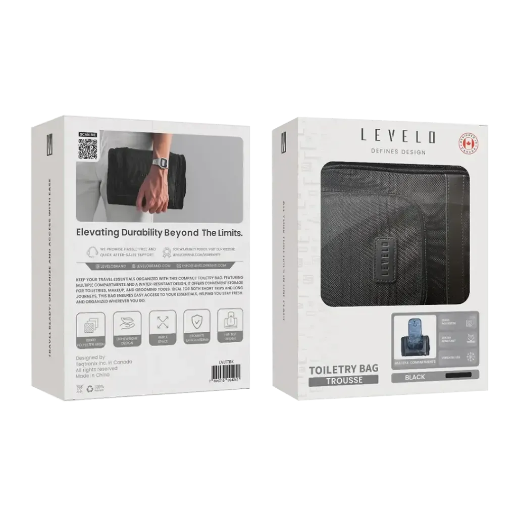 کیف لوازم شخصی Levelo مدل Trousse Toiletry Bag (LVLTTBK) یک همراه سبک، مقاوم و شیک برای سفر و استفاده روزمره است که با طراحی حرفهای و متریال باکیفیت، نظم و امنیت را برای وسایل شخصی شما فراهم میکند.