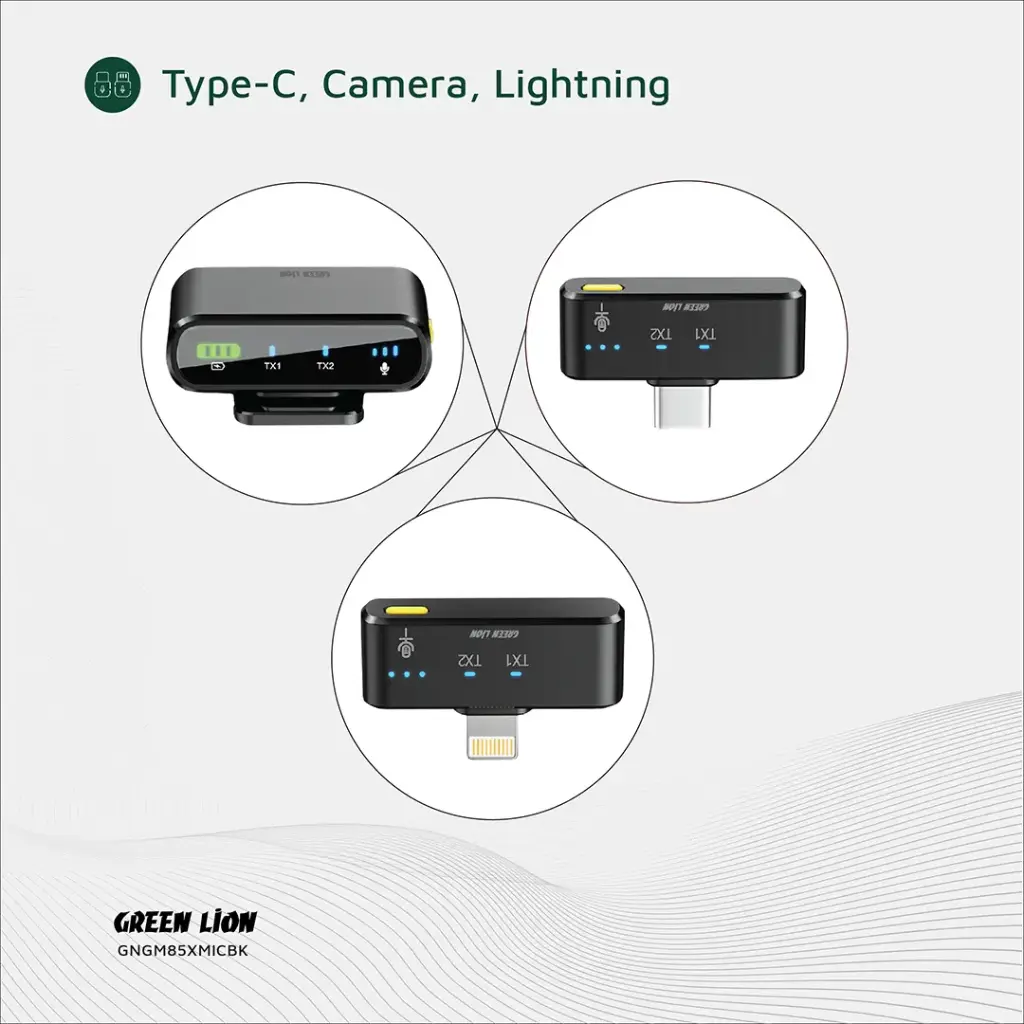 مدل GM-85X از برند Green Lion، یک ست میکروفون بیسیم با طراحی مدرن و عملکرد چندمنظوره است. این محصول شامل دو میکروفون یقهای، یک گیرنده سهدرگاهه (Type-C، Lightning و AUX برای دوربین)، و یک کیس شارژ چرمی با ظرفیت بالا است. میکروفونها با الگوی Omni-Directional صدا را از تمام جهات دریافت میکنند و با فناوری حذف نویز محیط، صدایی شفاف و حرفهای ارائه میدهند. باتری داخلی هر میکروفون تا ۶ ساعت ضبط مداوم را پشتیبانی میکند و کیس شارژ تا ۲۸ ساعت شارژ اضافی فراهم میکند. همچنین با برد انتقال ۲۰ تا ۴۰ متر، آزادی عمل زیادی به کاربر میدهد. وجود صفحهنمایش LED، گیره مغناطیسی ضد گمشدن و قابلیت تنظیم سطح صدا در ۳ حالت، این محصول را به انتخابی هوشمندانه برای تولیدکنندگان محتوا تبدیل کرده است.