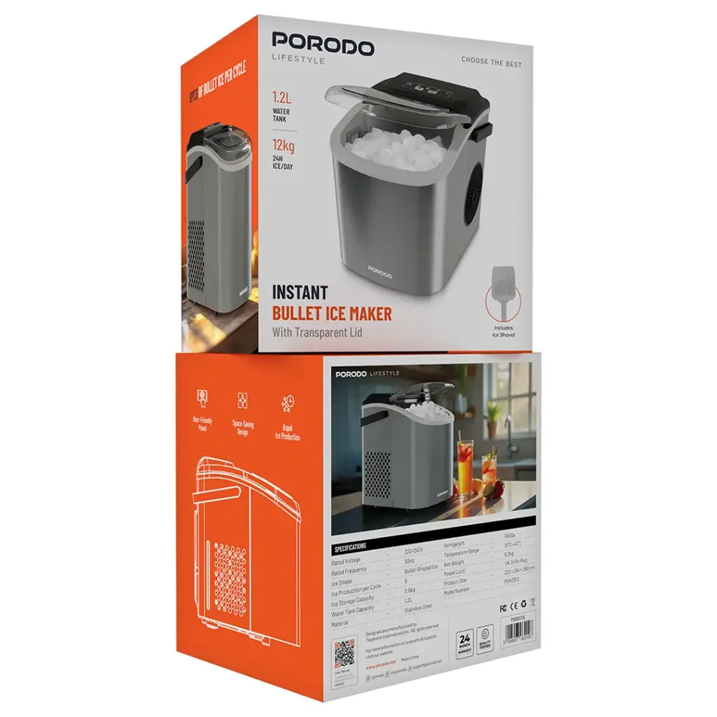 یخساز هوشمند پرودو مدل INSTANT BULLET ICE MAKER (PDHZB12SL) یک دستگاه مدرن و کاربردی برای تهیه سریع یخ در خانه، دفتر کار یا مهمانیهاست. این محصول با طراحی جمعوجور و امکانات پیشرفته عرضه شده و برای کسانی ساخته شده که میخواهند همیشه یخ تازه و آماده در دسترس داشته باشند.