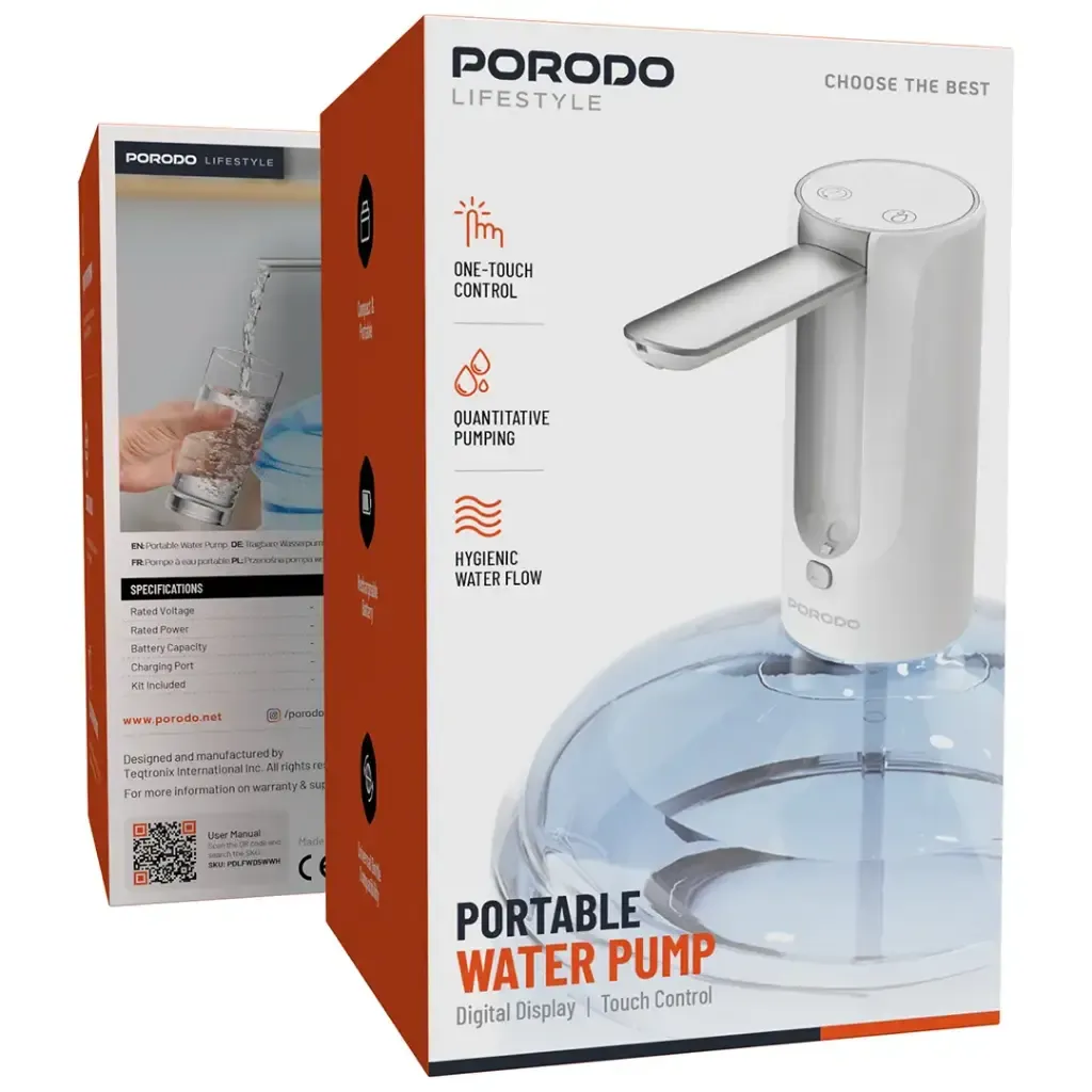 پمپ آب دیجیتال پرودو مدل (PDLFWD5WWH) Portable Water Pump یک دستگاه کاربردی و قابل حمل برای استفاده روزمره است که طراحی شده تا فرآیند برداشت آب از بطریها و گالنها را سادهتر و بهداشتیتر کند. این محصول با طراحی مدرن و امکانات هوشمند عرضه شده و برای کسانی ساخته شده که میخواهند همیشه دسترسی راحت به آب داشته باشند.