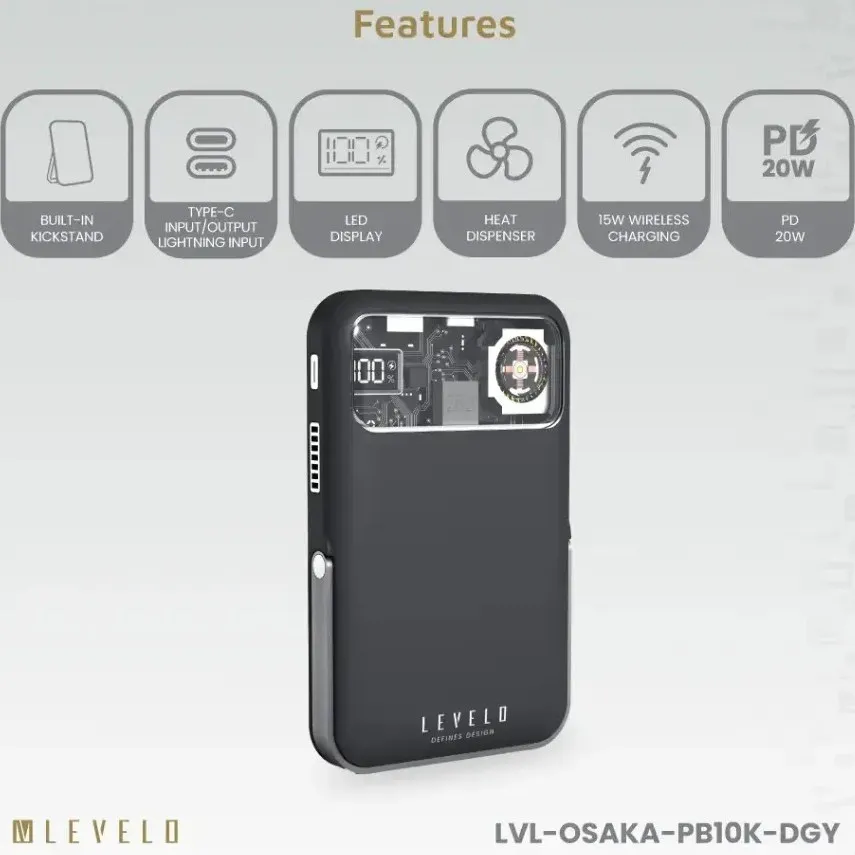 مدل Osaka با ظرفیت ۱۰,۰۰۰ میلیآمپر ساعت، مناسب برای شارژ دو تا سهبارهی گوشیهای هوشمند در طول روز است. این پاوربانک دارای دو درگاه خروجی USB-A و یک درگاه ورودی/خروجی USB-C است که امکان شارژ همزمان چند دستگاه را فراهم میکند. توان خروجی ۲۲.۵ وات آن از شارژ سریع پشتیبانی میکند و با فناوریهای ایمنی داخلی، از دستگاهها در برابر نوسانات ولتاژ، اتصال کوتاه و گرمای بیش از حد محافظت میکند. بدنهی آن از جنس ABS + PC مقاوم در برابر ضربه و خطوخش ساخته شده و طراحی باریک آن حملونقل را آسانتر کرده است. نشانگر LED میزان شارژ باقیمانده را نمایش میدهد و این مدل برای استفاده روزمره، سفر و محل کار گزینهای مطمئن و کاربردی است.