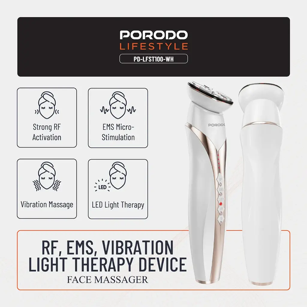 دستگاه RF & EMS Vibration Light Therapy با بهرهگیری از چهار فناوری اصلی، بهطور همزمان روی لایههای مختلف پوست اثر میگذارد. فرکانس رادیویی (RF) با گرم کردن بافتهای عمقی، تولید کلاژن را تحریک کرده و باعث سفتی پوست میشود. EMS با ارسال پالسهای الکتریکی، عضلات صورت را فعال کرده و به لیفت طبیعی کمک میکند. لرزشهای ملایم دستگاه باعث افزایش گردش خون و جذب بهتر مواد مغذی میشود. نور درمانی با استفاده از LEDهای رنگی (قرمز، آبی، سبز) به درمان آکنه، کاهش التهاب و روشن شدن پوست کمک میکند. طراحی ارگونومیک، وزن سبک و قابلیت شارژ مجدد، استفاده از این دستگاه را در خانه بسیار آسان و مؤثر کرده است.