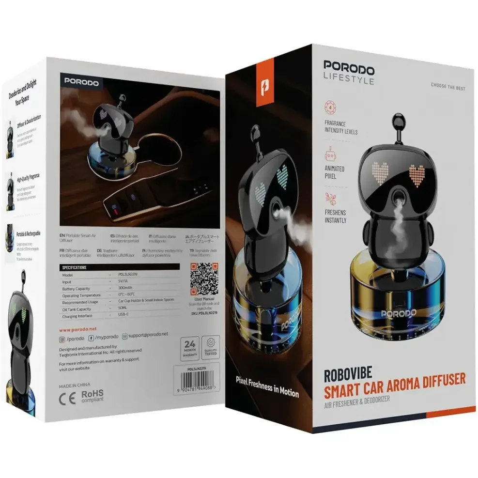 خوشبوکننده Robovibe از برند Porodo، یک دستگاه هوشمند و قابل حمل برای خوشبو کردن فضای خودرو و محیطهای کوچک داخلی است. طراحی آن به گونهای است که بهراحتی در جا لیوانی خودرو قرار میگیرد و با نمایشگر پیکسلی، جلوهای خاص و مدرن ایجاد میکند. این دستگاه دارای مخزن ۵۰ میلیلیتری برای روغن معطر است که با باتری ۳۰۰ میلیآمپری قابل شارژ، تا ساعتها رایحهای یکنواخت و دلپذیر منتشر میکند. قابلیت تنظیم شدت رایحه در چهار سطح مختلف به کاربر اجازه میدهد تا فضای خودرو را مطابق با سلیقهاش معطر کند. شارژ سریع از طریق درگاه USB-C و عملکرد در دمای ۰ تا ۶۰ درجه سانتیگراد، استفاده از آن را در شرایط مختلف آبوهوایی ممکن میسازد. علاوه بر پخش رایحه، عملکرد ضدبو نیز دارد که به حفظ تازگی فضای داخلی کمک میکند. این دستگاه انتخابی عالی برای کسانی است که به زیبایی، راحتی و هوشمندی در خودرو اهمیت میدهند.