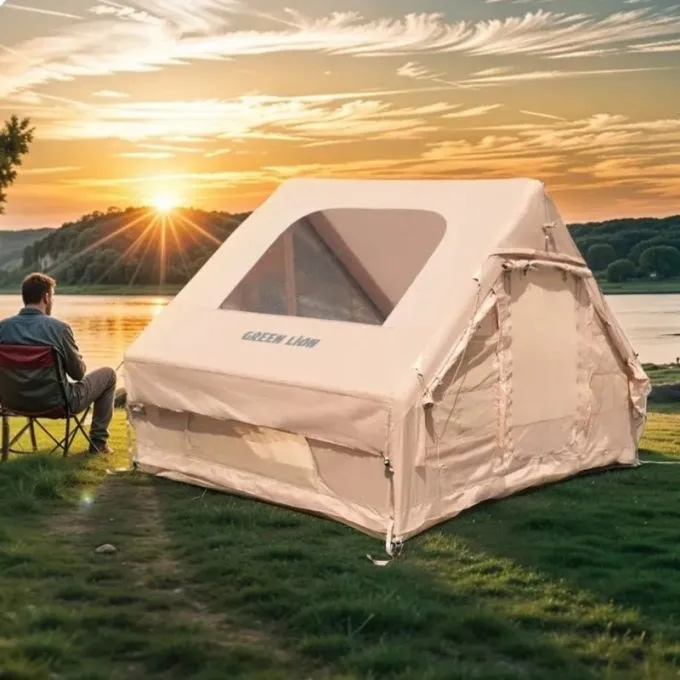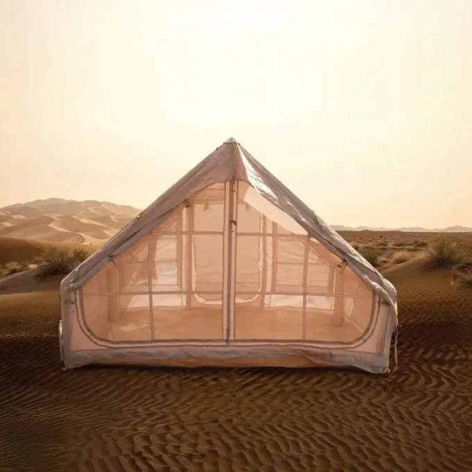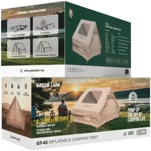 چادر GT-4X با ساختار بادی innovative طراحی شده که نصب آن را در کمتر از ۵ دقیقه ممکن میسازد. این چادر از پارچه پلیاستر با پوشش PU (ضدآب 3000mm) و درزهای چسبزده ساخته شده که در برابر بارش باران و رطوبت مقاوم است. قاب آن از لولههای بادی با قطر ۷ سانتیمتر تشکیل شده که با پمپ دستی (همراه چادر) به سرعت باد میشود. فضای داخلی آن به مساحت تقریبی ۶ مترمربع با ارتفاع ۱۶۰ سانتیمتر، فضای مناسبی برای ۴ نفر فراهم میکند. همچنین دارای دو لایه (درب توری + پارچه ضدآب) برای تهویه و محافظت در برابر حشرات است. پنجرههای مشبک و دریچههای تهویه از تشکیل condensation جلوگیری میکنند.