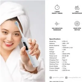 مسواک برقی گرین لاین مدل GNSTBRUTFTWH با نمایشگر TFT