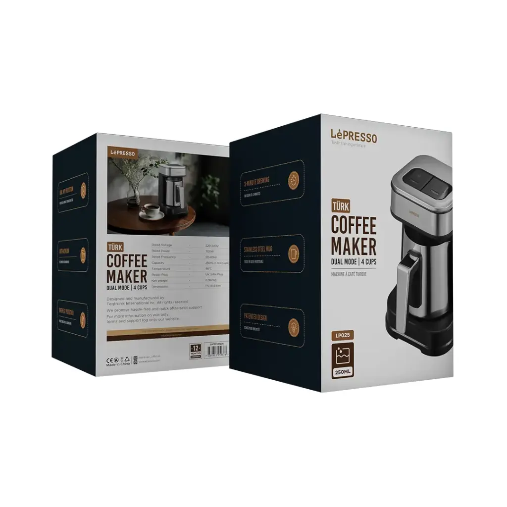 این دستگاه با طراحی ارگونومیک و بدنهای از پلاستیک مقاوم حرارتی، مناسب تهیه ۱ تا ۴ فنجان قهوه ترک در هر نوبت است. دارای دو حالت دمآوری مجزا است: حالت سریع (Variable Frequency) برای تهیه فوری و حالت حرارت ملایم (Low Heat) برای طعم عمیقتر و سنتیتر. دمای ثابت ۹۶ درجه سانتیگراد، استخراج کامل طعم قهوه را تضمین میکند. سیستم هشدار صوتی و نوری، چراغهای نشانگر چندرنگ، و محافظت خودکار در برابر جوشیدن بدون آب و سرریز، ایمنی و راحتی استفاده را افزایش میدهند. همچنین، ماگ استیل ضدزنگ جداشدنی به حفظ دمای نوشیدنی پس از دمآوری کمک میکند.